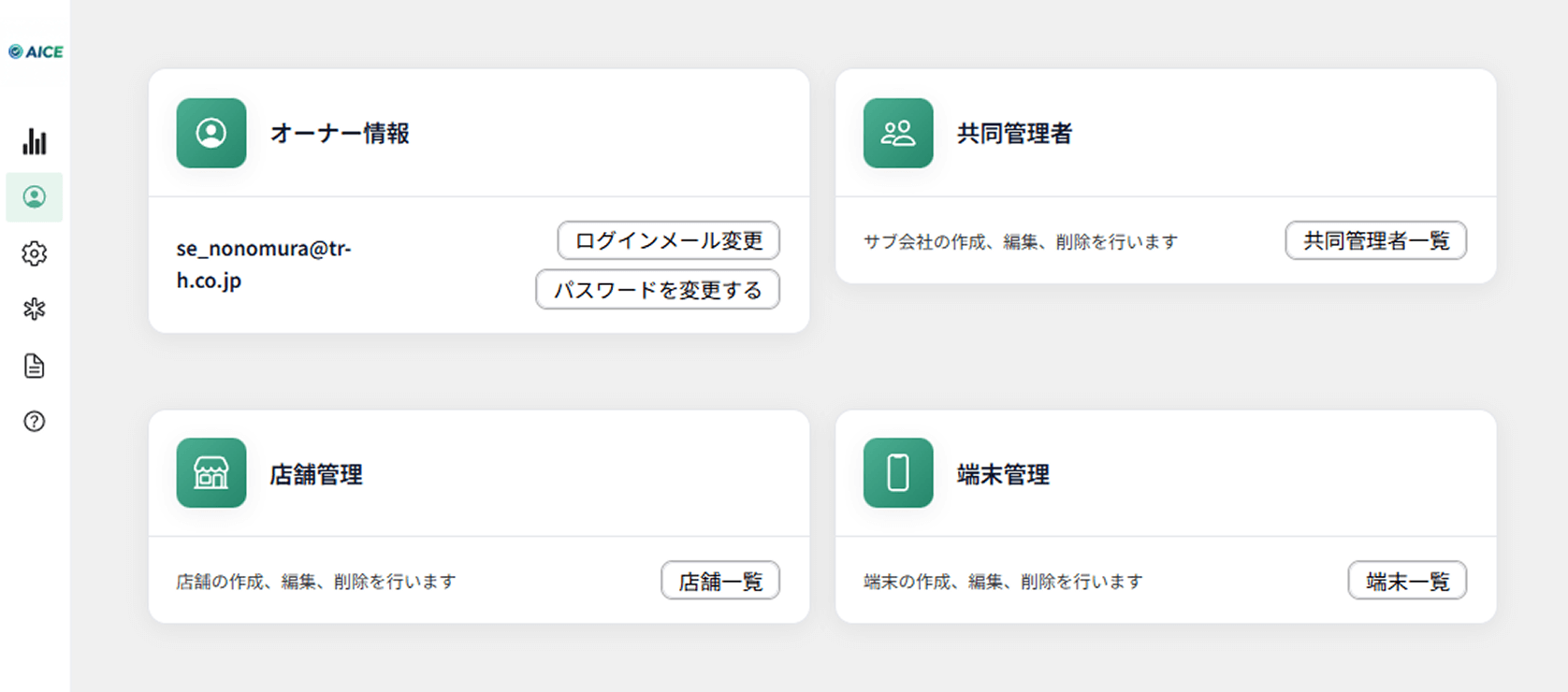共同管理者は、店舗や端末の登録/変更/削除が可能です。